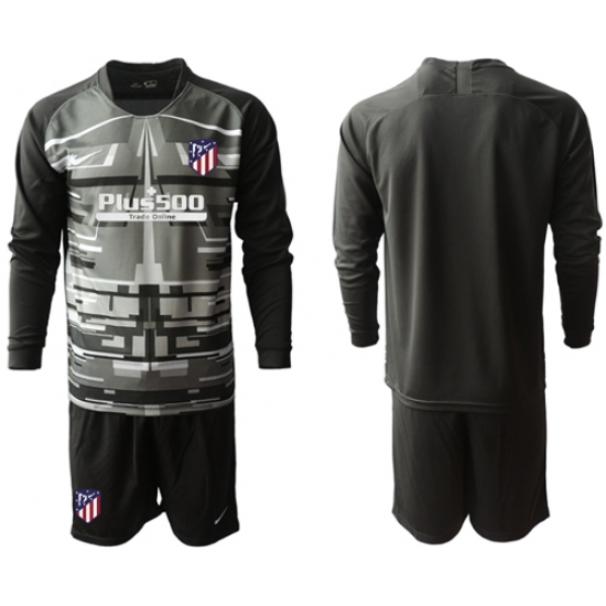 >Atletico Madrid Blank Black Goalkeeper Long Sleeves Soccer Club Jersey