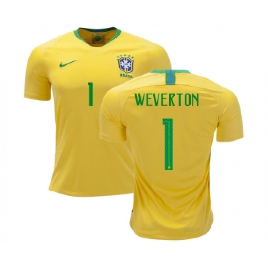 >Brazil #1 Weverton Home Kid Soccer Country Jersey