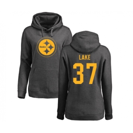 >Football Women's Pittsburgh Steelers #37 Carnell Lake Ash One Color Pullover Hoodie