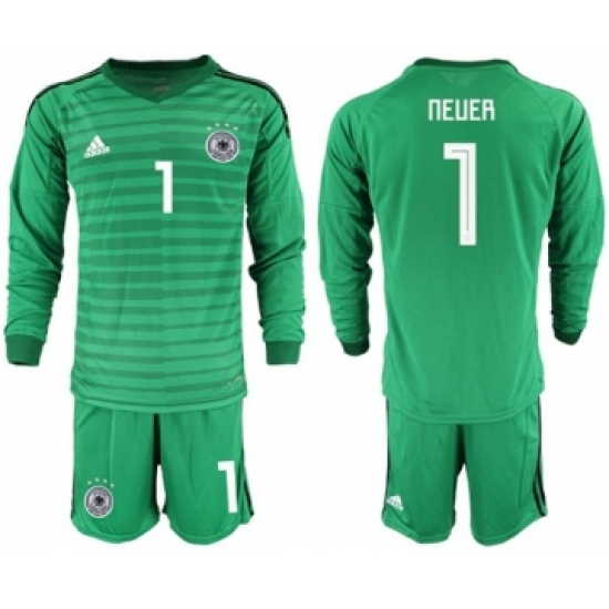 >Germany #1 Neuer Green Goalkeeper Long Sleeves Soccer Country Jersey