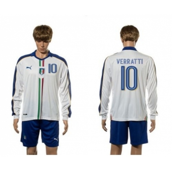 Italy #10 Verratti White Away Long Sleeves Soccer Country Jersey