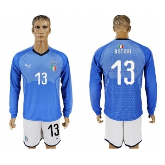 >Italy #13 Astori Blue Home Long Sleeves Soccer Country Jersey