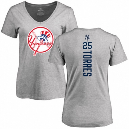 MLB Women's Nike New York Yankees #25 Gleyber Torres Ash Backer T-Shirt