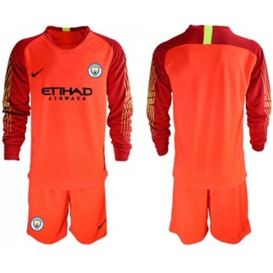 Manchester City Blank Red Goalkeeper Long Sleeves Soccer Club Jersey