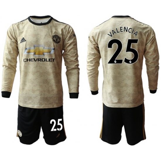 >Manchester United #25 Valencia Away Long Sleeves Soccer Club Jersey