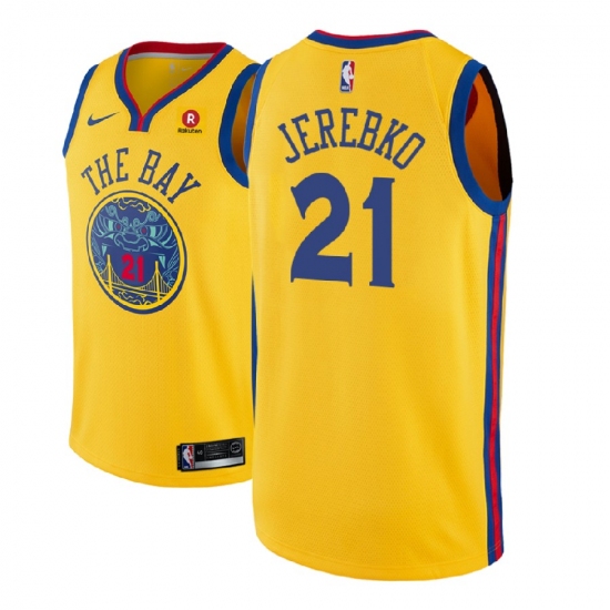 Men NBA 2018-19 Golden State Warriors #21 Jonas Jerebko City Edition Gold Jersey