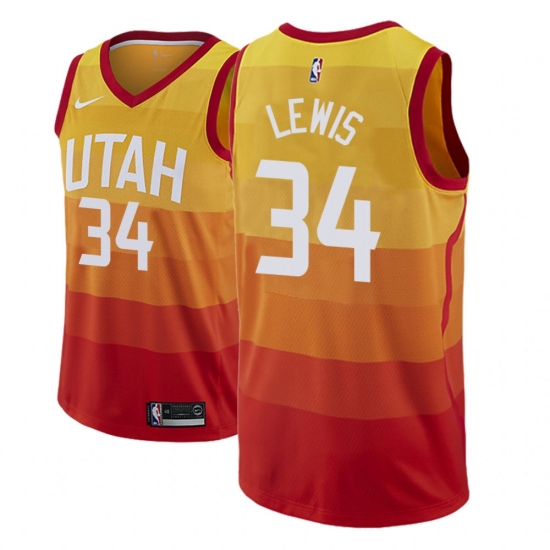 >Men NBA 2018-19 Utah Jazz #34 Trey Lewis City Edition Red Jersey