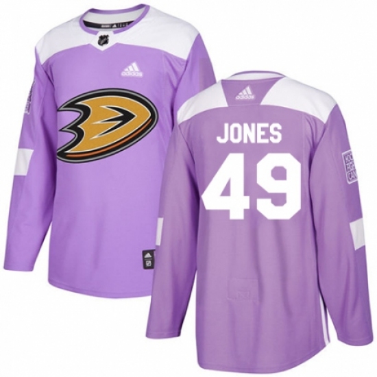 >Men's Adidas Anaheim Ducks #49 Max Jones Authentic Purple Fights Cancer Practice NHL Jersey