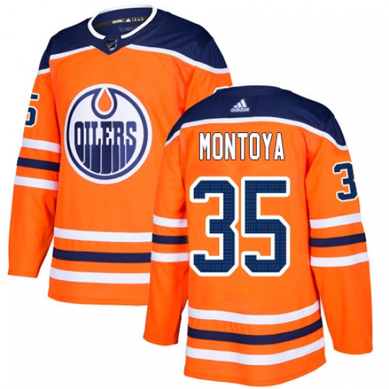 >Men's Adidas Edmonton Oilers #35 Al Montoya Authentic Orange Home NHL Jersey