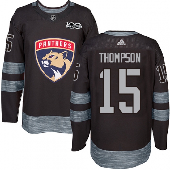 Men's Adidas Florida Panthers #15 Paul Thompson Authentic Black 1917-2017 100th Anniversary NHL Jersey