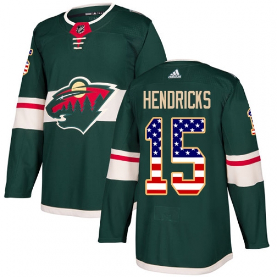 >Men's Adidas Minnesota Wild #15 Matt Hendricks Authentic Green USA Flag Fashion NHL Jersey