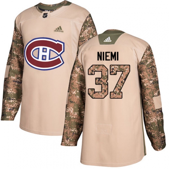 >Men's Adidas Montreal Canadiens #37 Antti Niemi Authentic Camo Veterans Day Practice NHL Jersey