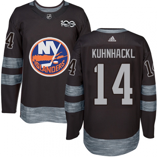 Men's Adidas New York Islanders #14 Tom Kuhnhackl Authentic Black 1917-2017 100th Anniversary NHL Jersey