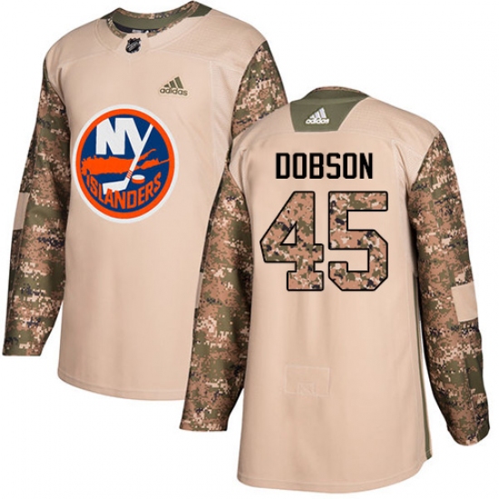 >Men's Adidas New York Islanders #45 Noah Dobson Authentic Camo Veterans Day Practice NHL Jersey