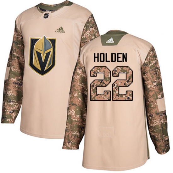 >Men's Adidas Vegas Golden Knights #22 Nick Holden Authentic Camo Veterans Day Practice NHL Jersey