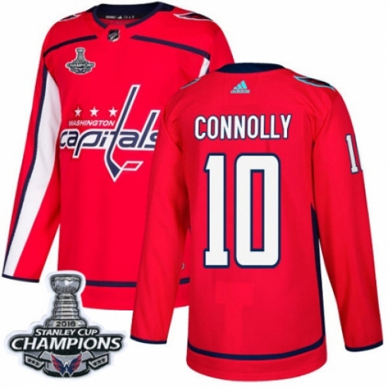 Men's Adidas Washington Capitals #10 Brett Connolly Authentic Red Home 2018 Stanley Cup Final Champions NHL Jersey