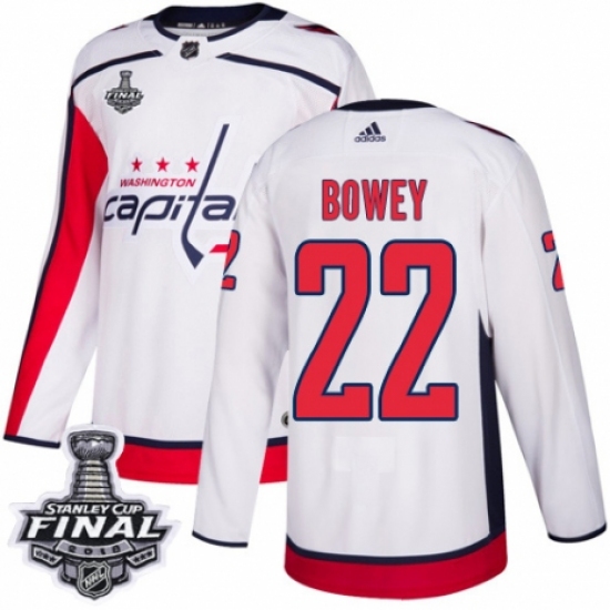 Men's Adidas Washington Capitals #22 Madison Bowey Authentic White Away 2018 Stanley Cup Final NHL Jersey