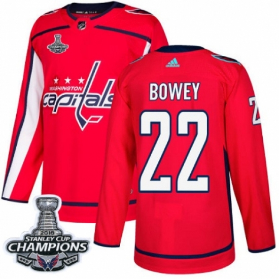 Men's Adidas Washington Capitals #22 Madison Bowey Premier Red Home 2018 Stanley Cup Final Champions NHL Jersey