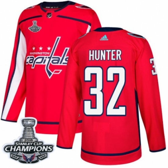 Men's Adidas Washington Capitals #32 Dale Hunter Premier Red Home 2018 Stanley Cup Final Champions NHL Jersey