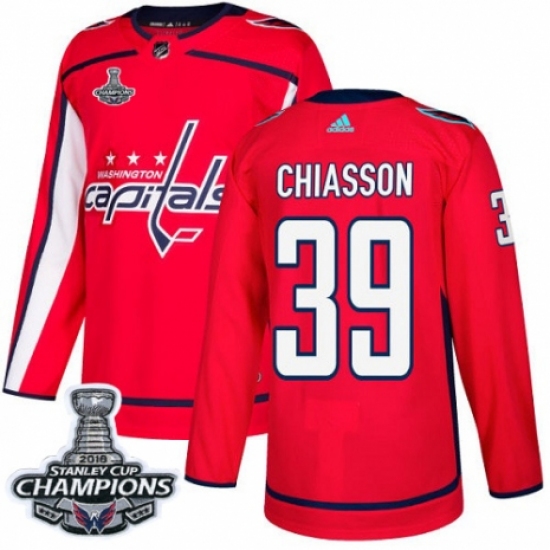 Men's Adidas Washington Capitals #39 Alex Chiasson Premier Red Home 2018 Stanley Cup Final Champions NHL Jersey