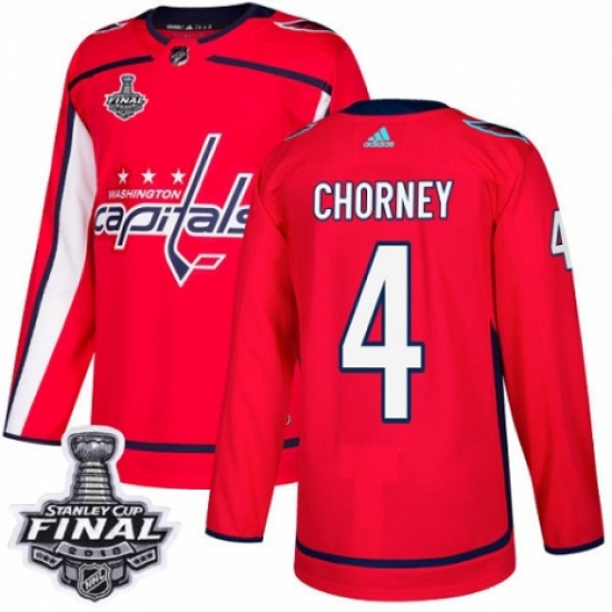 Men's Adidas Washington Capitals #4 Taylor Chorney Premier Red Home 2018 Stanley Cup Final NHL Jersey