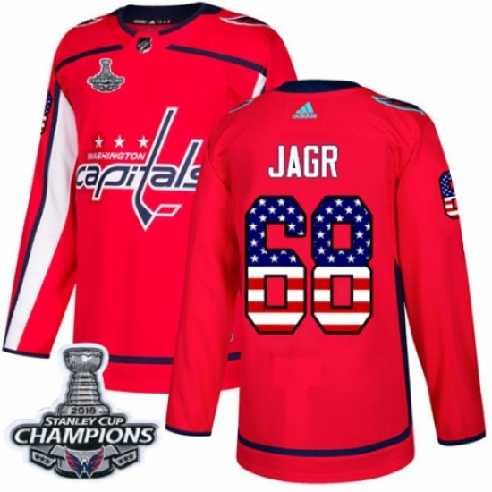Men's Adidas Washington Capitals #68 Jaromir Jagr Authentic Red USA Flag Fashion 2018 Stanley Cup Final Champions NHL Jersey