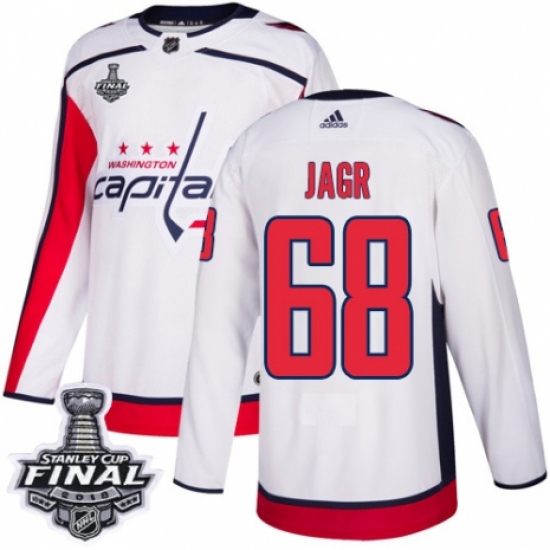 Men's Adidas Washington Capitals #68 Jaromir Jagr Authentic White Away 2018 Stanley Cup Final NHL Jersey