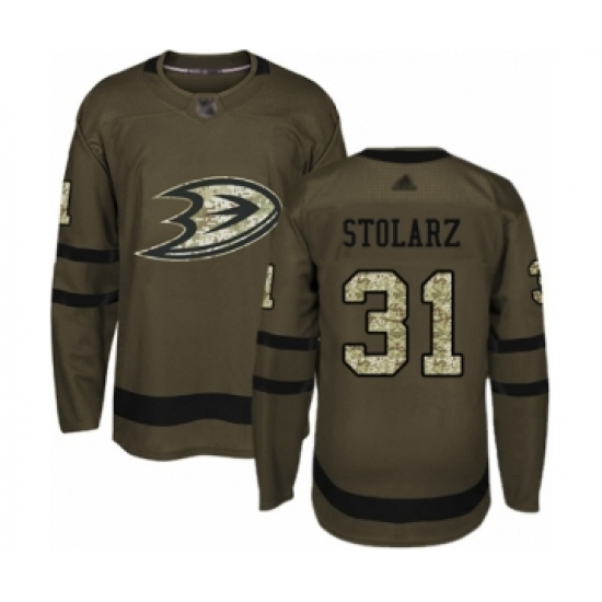 >Men's Anaheim Ducks #31 Anthony Stolarz Authentic Green Salute to Service Hockey Jersey