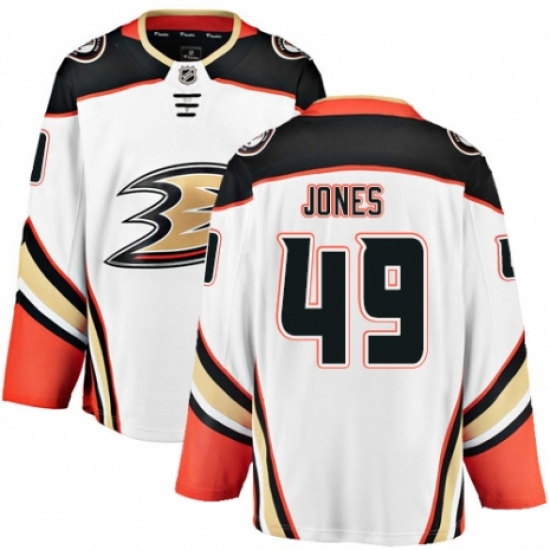 Men's Anaheim Ducks #49 Max Jones Authentic White Away Fanatics Branded Breakaway NHL Jersey