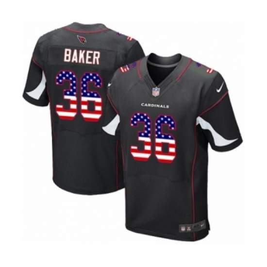 Men's Arizona Cardinals #36 Budda Baker Elite Black Alternate USA Flag Fashion Football Jersey