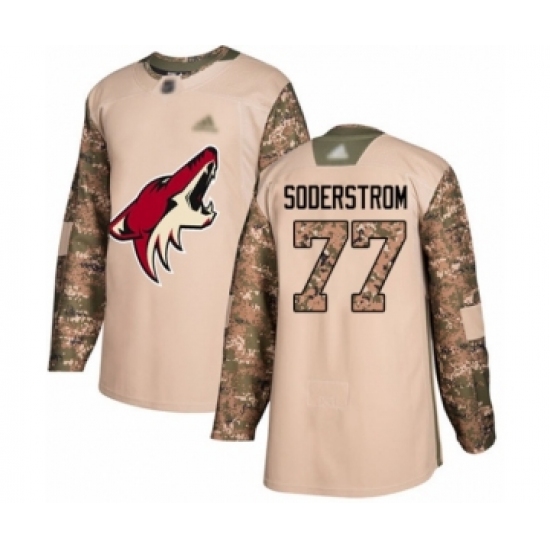 >Men's Arizona Coyotes #77 Victor Soderstrom Authentic Camo Veterans Day Practice Hockey Jersey