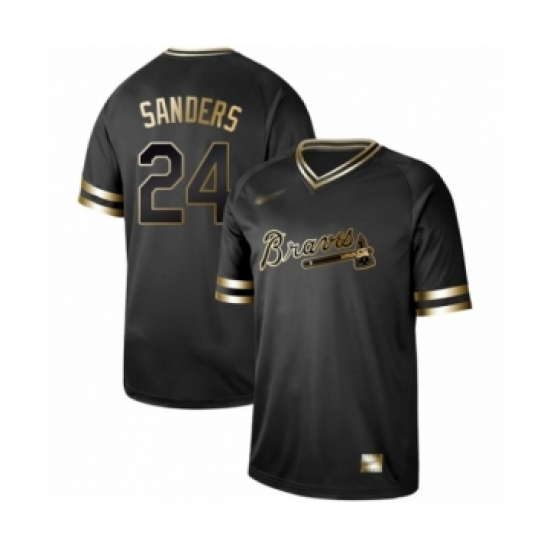 >Men's Atlanta Braves #24 Deion Sanders Authentic Black Gold Fashion Baseball Jersey