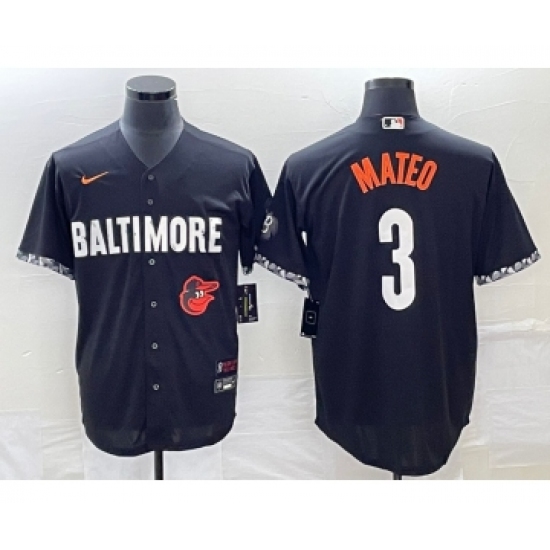 >Men's Baltimore Orioles #3 Jorge Mateo Black 2023 City Connect Cool Base Stitched Jersey 1