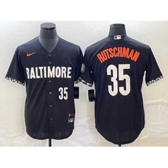 >Men's Baltimore Orioles #35 Adley Rutschman Number Black 2023 City Connect Cool Base Stitched Jersey 1