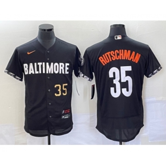>Men's Baltimore Orioles #35 Adley Rutschman Number Black 2023 City Connect Flex Base Stitched Jersey
