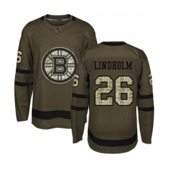 >Men's Boston Bruins #26 Par Lindholm Authentic Green Salute to Service Hockey Jersey