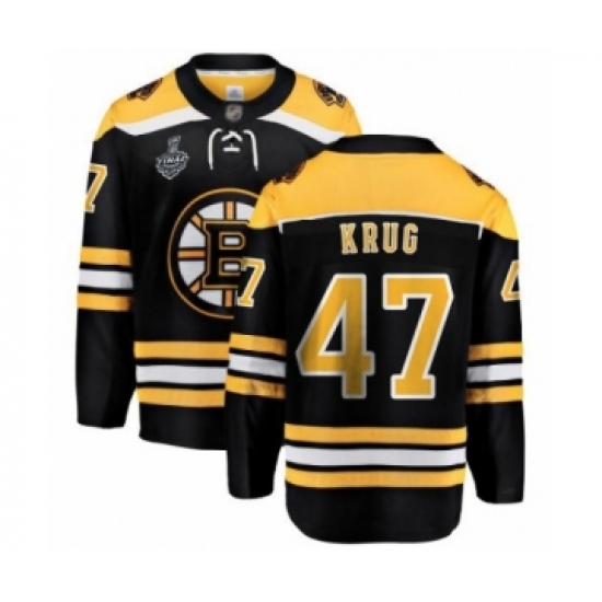 >Men's Boston Bruins #47 Torey Krug Authentic Black Home Fanatics Branded Breakaway 2019 Stanley Cup Final Bound Hockey Jersey