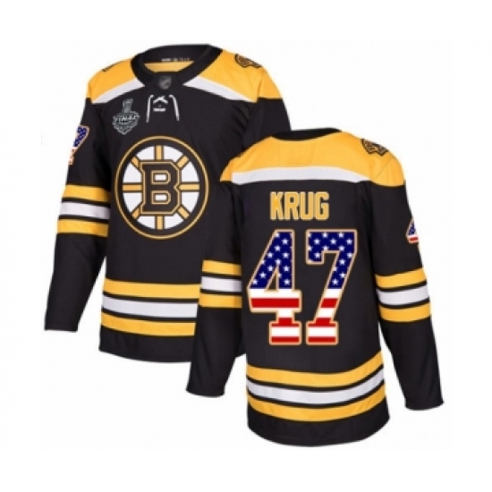 Men's Boston Bruins #47 Torey Krug Authentic Black USA Flag Fashion 2019 Stanley Cup Final Bound Hockey Jersey