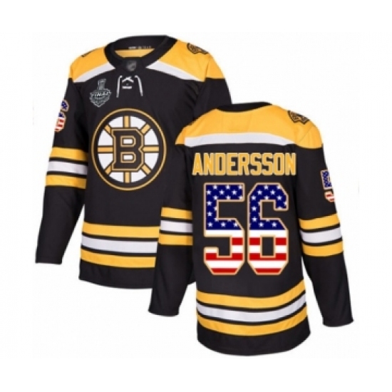 Men's Boston Bruins #56 Axel Andersson Authentic Black USA Flag Fashion 2019 Stanley Cup Final Bound Hockey Jersey