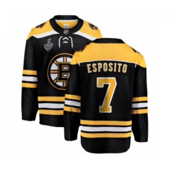 >Men's Boston Bruins #7 Phil Esposito Authentic Black Home Fanatics Branded Breakaway 2019 Stanley Cup Final Bound Hockey Jersey