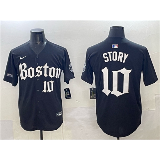 >Men's Boston Red Sox #10 Trevor Story Black Gothic Vapor Limited Stitched Baseball Jersey