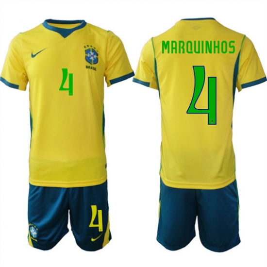 Men's Brazil #4 MARQUINHOS National Team FIFA x World Cup 2026 Home On Field Jersey