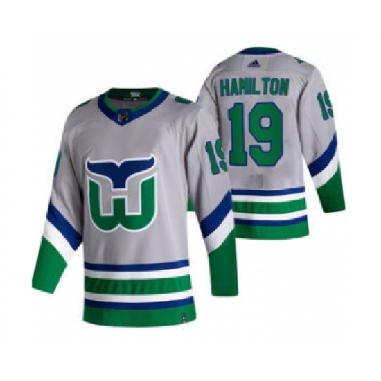 Men's Carolina Hurricanes #19 Dougie Hamilton Grey 2020-21 Reverse Retro Alternate Hockey Jersey