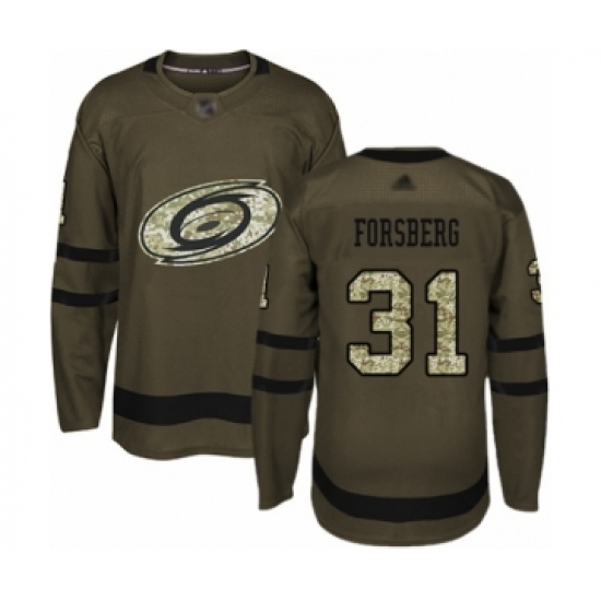 Men's Carolina Hurricanes #31 Anton Forsberg Authentic Green Salute to Service Hockey Jersey