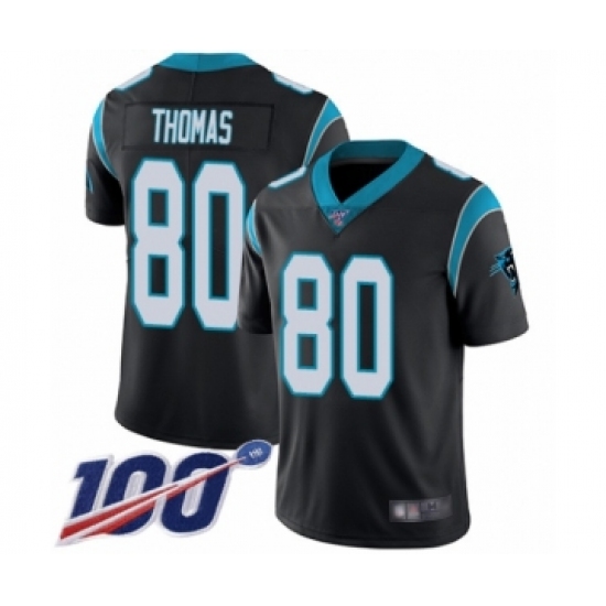 Men's Carolina Panthers #80 Ian Thomas Black Team Color Vapor Untouchable Limited Player 100th Season Football Jersey