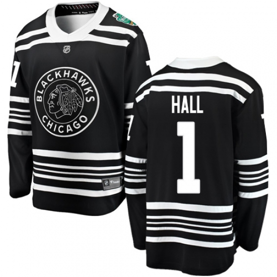 >Men's Chicago Blackhawks #1 Glenn Hall Black 2019 Winter Classic Fanatics Branded Breakaway NHL Jersey