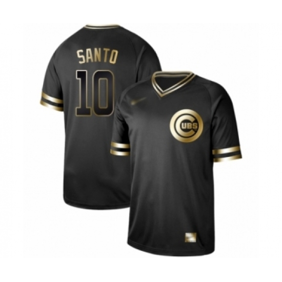 Men's Chicago Cubs #10 Ron Santo Authentic Black Gold Fashion Baseball Jersey