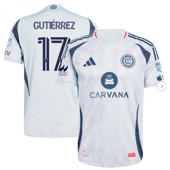 >Men's Chicago Fire Brian Gutierrez adidas Light Blue 2025 The Municipal Kit Authentic Player Jersey