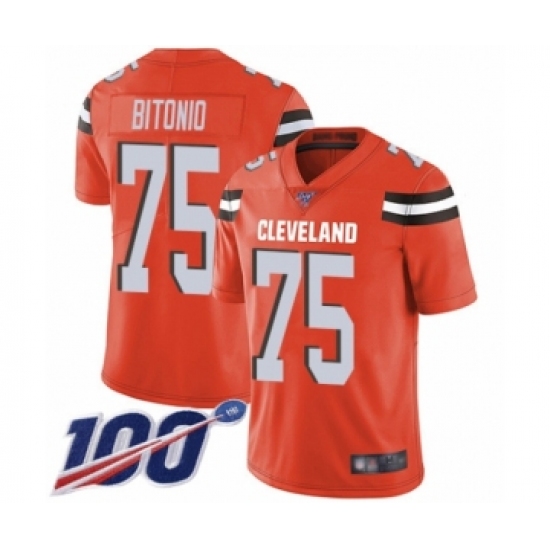 Men's Cleveland Browns #75 Joel Bitonio Orange Alternate Vapor Untouchable Limited Player 100th Season Football Jersey