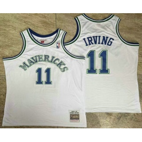 Men's Dallas Mavericks #11 Kyrie Irving White AU Throwback Jersey